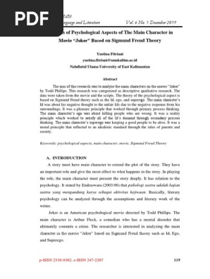 Analysis Of Psychological Aspects Of The Main Character In Movie Joker Based On Sigmund Freud Theory Pdf Id Thought